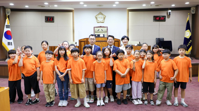 서울시 강동구의회(의장 조동탁)가 지난 9월 18일(목), 성내초등학교 3학년 학생들을 대상으로 의회 견학프로그램을 진행했다. 이번 견학은 성내초등학교 3학년 4반 학생 21명을 대상으로 진행되었으며, 지역의원인 권혁주 의원과 김기상 도시건설부위원장, 비례대표 강유진 의원이 학생들을 맞이했다. 견학에 참여한 학생들은 의회 시설을 둘러보고 6층 본회의장에서 애니메이션으로 제작된 의회 홍보 영상을 시청하며 강동구의회의 구성, 역할과 기능에 대해 알아보는 시간을 가졌다. 의원들은 학생들의 눈높이에 맞춰 ‘강동구의회에서 하는 일, 의원의 역할’ 등에 대해 다시 한번 알기 쉽게 설명하며 특별한 소통의 시간을 이어갔으며, 이후 기념사진 촬영을 끝으로 견학 활동을 마무리했다. 한편, 강동구의회는 관내 학생들에게 의회 시설을 견학하는 기회를 제공함으로써 지방의회의 역할과 의정활동에 대해 알리는 의회 견학프로그램을 운영해 ‘열린 의회’를 구현해 내고 있다.