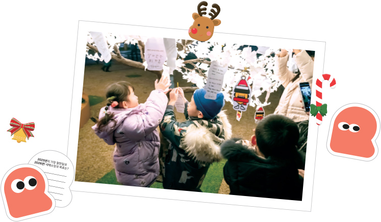 반짝이는 트리를 보며 한 해 동안 감사했던 일과 2026년 소망을 카드에 적어 소망나무에 걸어보세요!