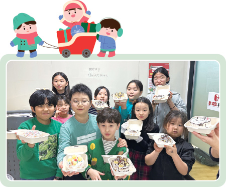 | 꿈미소 | 연말 프로그램 | 공예(오르골, 크리스마스 양말목 리스, 스노우볼 만들기), 요리(와플크로와상, 초코트리, 프레첼 리스 만들기) 등 |