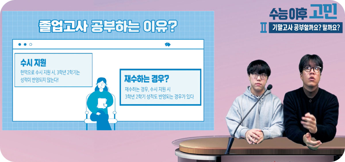 강동구는 수시·정시 전형을 직접 경험하고 합격한 대학생 멘토가 중·고등학생에게 실질적인 진로상담을 제공하는 ‘실시간 온라인 진로멘토링’을 시작한다. 학습·진로·진학에 대해 무엇이든 물어볼 수 있고, 원하는 시간·장소에서 상담받을 수 있다.